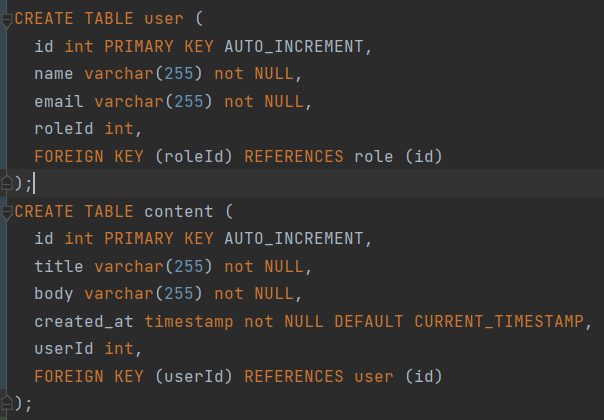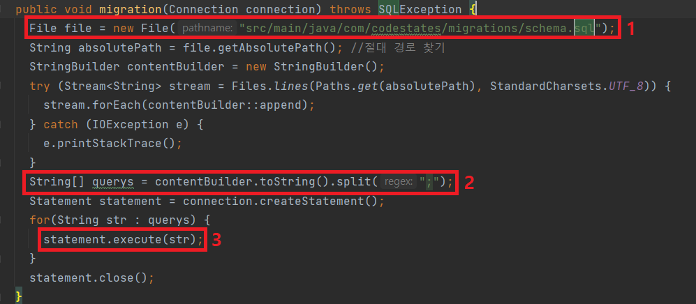 따로 schema.sql 문서를 작성하여 호출후 명령을 실행하도록 동작
