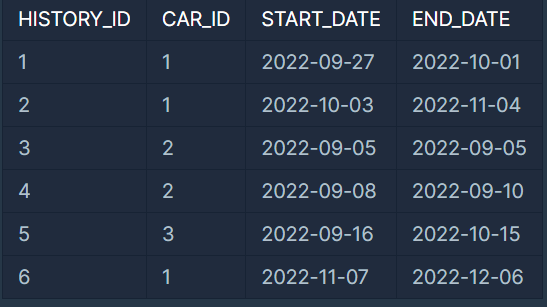 SELECT CAR_ID,ROUND(SUM(DATEDIFF(END_DATE, START_DATE)+1)/COUNT(END_DATE),1) AS AVERAGE_DURATION FROM CAR_RENTAL_COMPANY_RENTAL_HISTORY