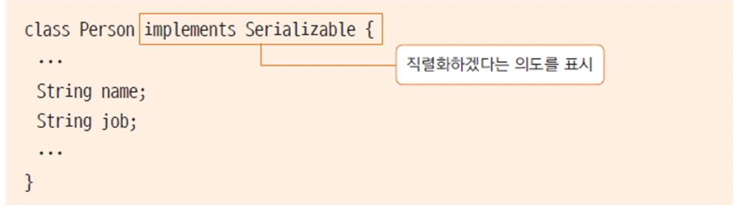 직렬화는 인스턴스의 내용이 외부(파일, 네트워크 ) 로 유출되는 것이므로 프로그래머가 객체의
