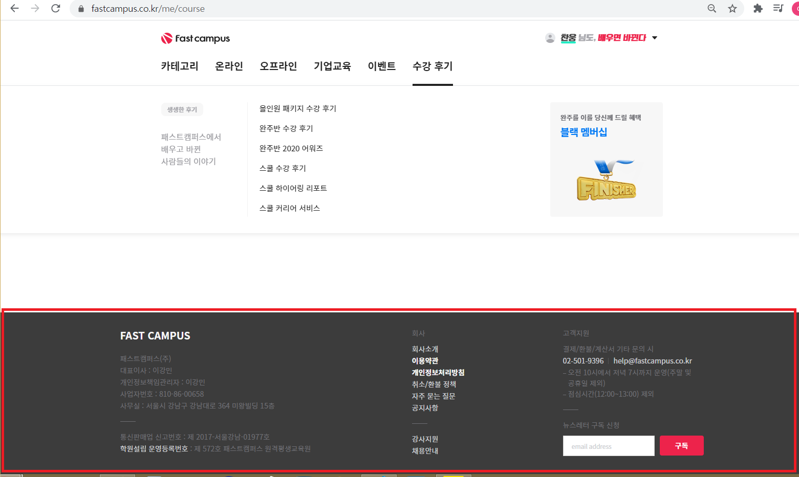 [콘텐츠 구분]footer 태그 ( 사이트 하단에 작성자, 데이터, 계좌등 들어가는 자리 )