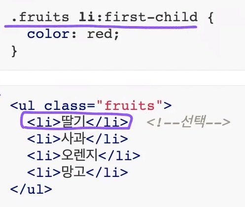 4. first-child ( 기본선택자의 형제 요소 중 첫번째 요소라면 선택 )