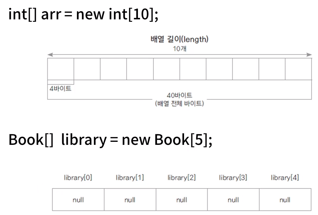 - int arr[] = new int[10]; // 처음에는 0 값이 다 들어가 있으니 주의