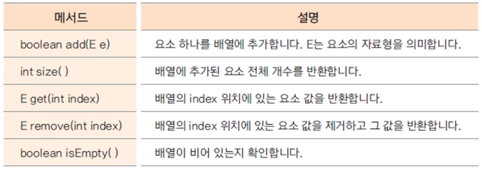 자바에서 제공되는 객체 배열이 구현된 클래스