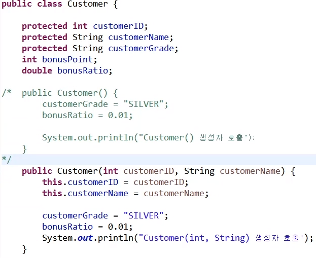 super(); 라는 상위클래스의 기본 생성자를 먼저 호출한다.